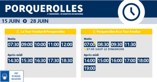 Changements d’horaires à compter du 15 juin à destination de Porquerolles